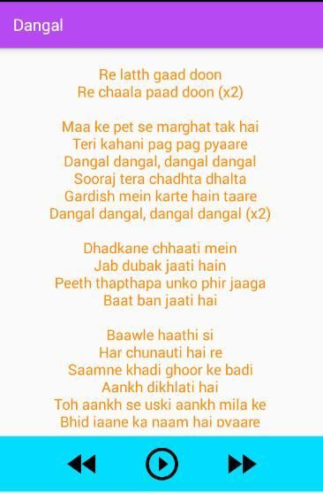 Dangal это приложения Текст песни, который подходит в вашем телефоне, и это простой в использовании и бесплатно для вас. Все на этом приложение предназначено только для развлечения. Просто искать какие-фильм песни и тексты песен вы получаете все песни из Dangal, что вы ищете.
