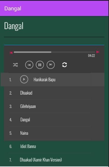 Кроме песен из фильма Dangal песен, которые вы можете слушать другой фильм, в последующих приложениях, таких как: