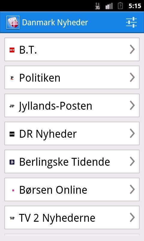 The #1 news reader app for Danish on Google Play now supports widget. It's a fast and easy way to read Denmark (Danmark) News (Nyheder) in Danish (dansk) on Android. Danmark Nyheder gives you easy access to read the most popular news sources from Denmark (Danmark) on your Android device. Take this app with you and stay informed with access to the latest news. FEATURES * News by site. * News by category. * Download news briefs automatically. * Offline reading. * News widget. * Remove or sort news sources. * Edit default news sources. * Subscribe news sources via RSS. * Import more news sources via OPML. * Option to block images (reduce bandwidth). * Share news via SMS, Email, Facebook, Twitter...