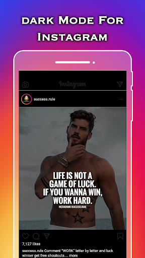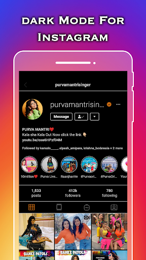 Это неофициальное приложение, которое меняет стиль Instagram в черную тему Отказ Нет необходимости в Android 10, работает для Android 6, 7, 8 и 9!