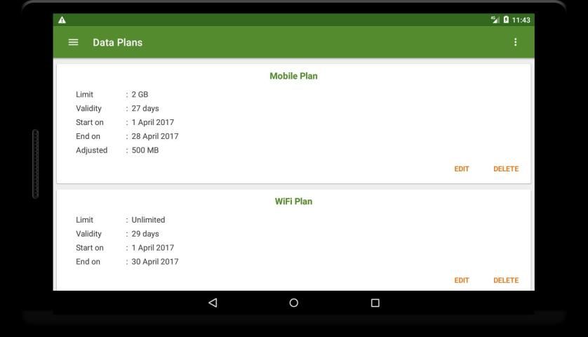 Это приложение поможет вам контролировать ежедневно и ежемесячно использование данных для мобильных и WiFi плана. Он предупреждает вас, когда использование данных достигает около предела плана и когда план срок действия истекает в ближайшее время. Вы также можете контролировать текущую скорость интернета в приложении и в панели уведомлений.
