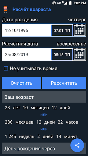 ► Рассчитайте свой точный возраст в годах, месяцах и днях, как калькулятор возраста.