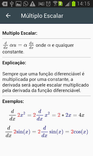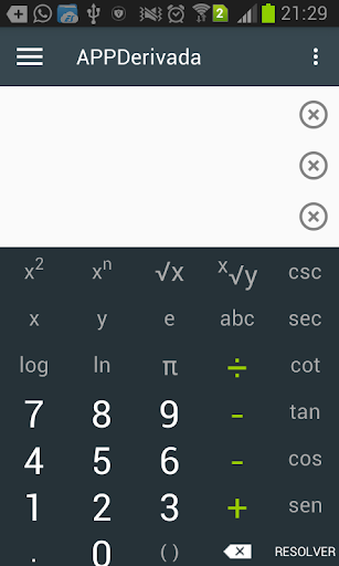 Производное расчет поддерживает первые вычисления, второе, ..., пятые производные, а также дифференцированные функции со многими переменными (частичными производными).Он имеет виртуальную клавиатуру, которая может взаимодействовать с пользователем и, таким образом, облегчает ввод функции, которую вы хотите получить.