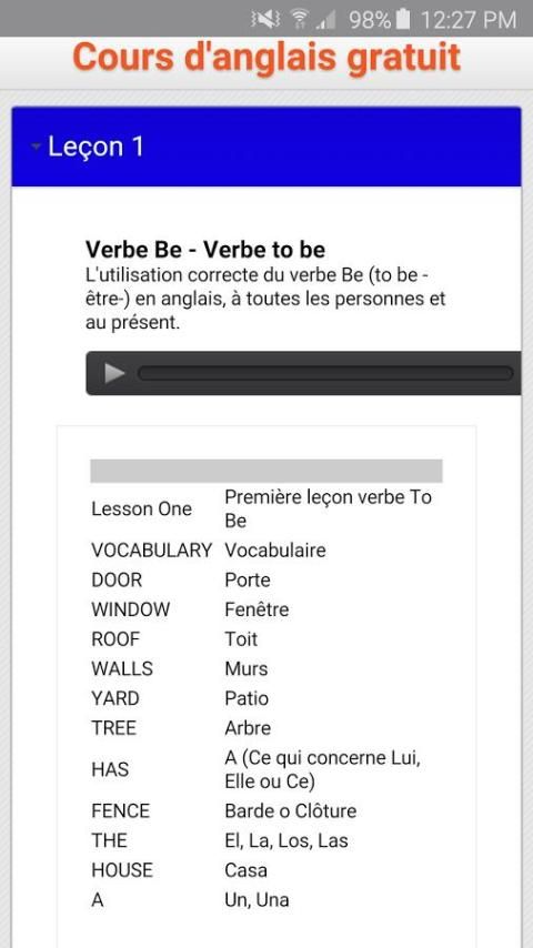 Это приложение имеет 50 уроков английского языка с аудио, текста и произношение фигурной.
