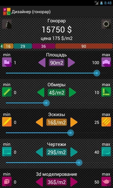 Калькулятор гонорара для дизайнера на основе цены на обмеры, чертежи, 3d моделирование, эскизы, авторский надзор.