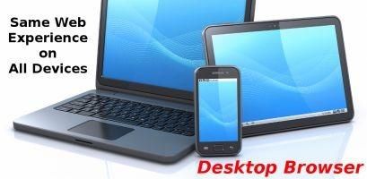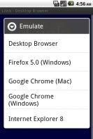 Desktop Browser allows your capable Android tablet and Android phone to render web sites in native desktop view. Instead of seeing mobile versions of web sites, you can quickly and easily view web pages rendered just like you can on your computer. No more limited function mobile sites if your Android device can handle it. It's a great solution for large screen tablets where a full-featured web page can be fully rendered to take advantage of the screen resolution and estate. You can now have fun accessing web sites built for desktop and notebook computers. Save time looking for functions that doesn't exist on mobile web sites. For example, if you try to view FoxFi's web site with Android Browser, the web site will redirect you to Google Play (Android Market) for you to download the FoxFi app. But if you really want to get the latest information on FoxFi's web pages, you'll have to use Desktop Browser to see them. Desktop Browser has the ability to emulate various different browsers via user agent strings: 1) Apple Safari 4; 2) Desktop Browser; 3) Mozilla Firefox 5 for Windows; 4) Google Chrome for Macintosh; 5) Google Chrome for Windows; 6) Microsoft Internet Explorer 8; 7) Opera 9 for Macintosh. Pick the one that is best for the web site you want. Switch between browser user agent strings at will. Emulation defaults to "Desktop Browser" on install; be sure to change the emulation via menu operation. Download Desktop Browser right away to use alongside the Android Browser. You'll love the proven results. Menu Options: Emulate - Allows you to choose from various browser's user agent strings, which the Desktop Browser will pretend to be. New URL - Allows you to enter a new web site link. The dialog box remembers the last URL you entered. Edit URL - Use this option to view the URL of the current page. You can then modify the URL, or copy-and-paste it into a bookmark or into a different app. Bookmarks - Access the Liink (www.Liink.com) online bookmark site. You can access your bookmarks on Liink from any browser on any computing platform. Save Page - Saves the current web page to your SD Card (in the /sdcard/download/ directory). Refresh - Reloads the current web page. Search - Provides a Google search box to help you search the web. Find - Lets you find text passages on the current web page. Select Text - Select text to copy to clipboard. Copied text can be pasted into other Android apps. This menu option is available on Android 2.3 and prior. On Android 4.1, long tap on a word to select and copy text. Page Info - Displays information regarding the current web page. Share - Share the current web page with family and friends. About - Brings up the About dialog which shows you information about this app, such as the version number. Quit - Shuts down the app completely.