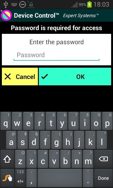 «Устройство управления» приложение будет немедленно заблокировать или разблокировать эту функцию.