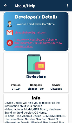 Detailed info about Sim such as: "SIM State", "Service Provider", "Mobile Operator Name", "Integrated Circuit Card Identifier(ICCID)", "Unique Device ID(IMEI)", "International Mobile Subscriber Id(IMSI)", "Device Software Version", "Mobile Country Code(MCC)", "Mobile Country Code(MCC) Mobile Network Code(MNC)", "Voicemail", "Roaming".