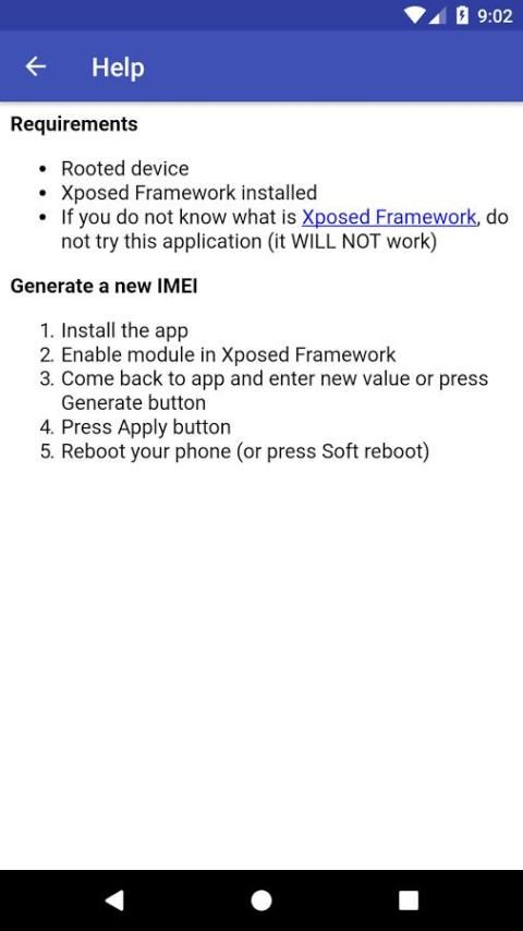 Приложение действует как модуль Экспоузд и позволяет изменить IMEI устройства.