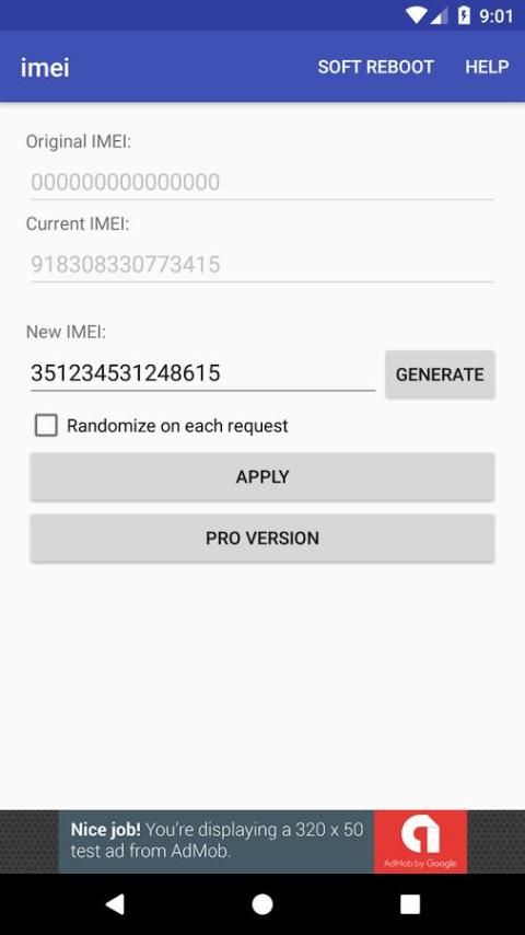 Приложение генерирует действительный номер IMEI (а не только случайные цифры).