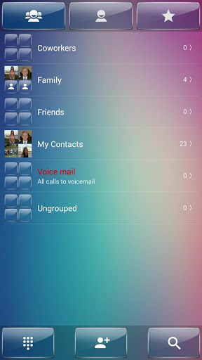 Эта тема даст вашему телефонному телефону другой взгляд в оттенках синего и фиолетового наряду с светом и розовым с прозрачными стеклянными кнопками.