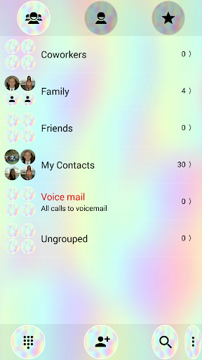 It will give your phone dial-pad a calm and peaceful look in soft holographic colors with an interface and keys decorated by multicolored abstract background.