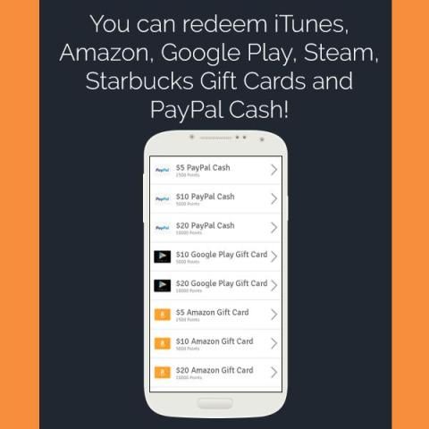 Для того, чтобы получить награды, нужно, чтобы заработать очки, и мы являемся единственным приложением на рынке, который предлагает бесплатно $ 2, когда вы начинаете использовать приложение! Это никогда не было так легко получить бесплатные подарочные карты.