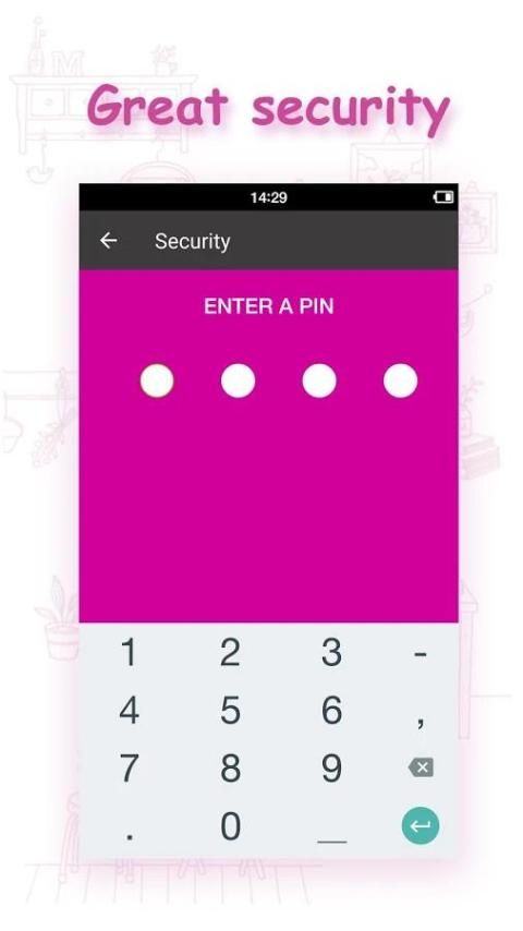 PIN замок . Создайте пароль и все ваши секреты полностью безопасны и частный для вас.