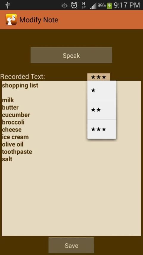 Используя некоторые простые голосовые команды, вы можете управлять тем, как ваши мысли организованы. Вы можете назначить другое значение каждой ноты, выбрав количество звезд. Примечания могут быть организованы в хронологическом или важность того. Записки же значение имеют последовательно цветом. Вы могли бы поделиться любой или все ваши заметки с помощью других приложений на телефоне, которые принимают ввод текста.