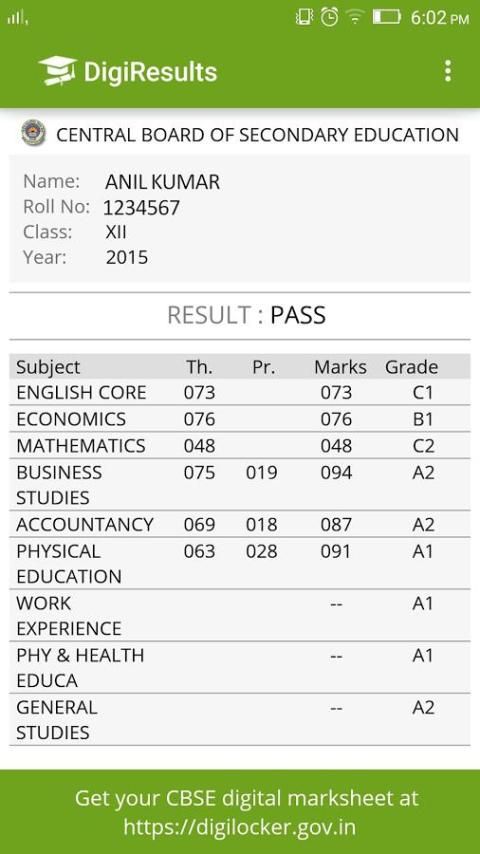 Ваш CBSE цифровой знак лист также будет доступен в вашем аккаунте DigiLocker.