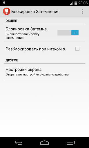 Блокировка Затемнения это простое приложение для остановки потемнения экрана вашего устройства. Приложение очень легкое для пользования, среди возможностей, можно останавливать блокировку при низком заряде батареи, а также открывать настройки экрана устройства одним кликом.