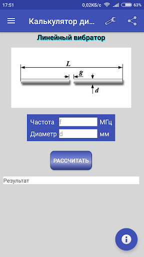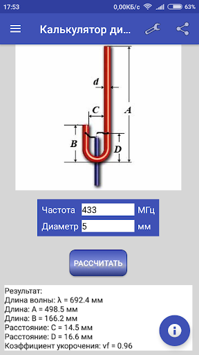 Калькулятор позволяет рассчитать длину и другие основные параметры различных конструкций дипольных антенн, принимая во внимание зависимость этих параметров от диаметра провода, что важно на UHF.