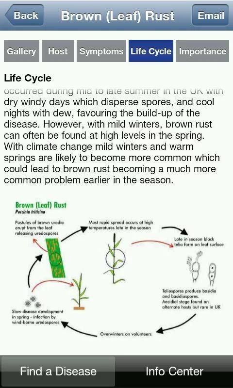 The Cereal Disease ID App is not intended to be a guide to disease control. Such information is readily available elsewhere, for example the principles of wheat disease management can be found in the HGCA Wheat Disease Management Guide and current information on fungicide performance is published annually on the HGCA website