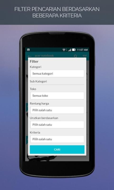 • Mencari produk yang diinginkan dari delapan toko online terbesar di Indonesia