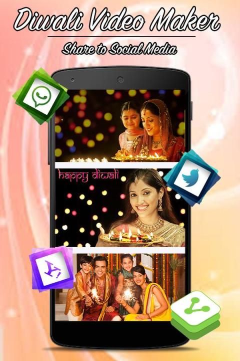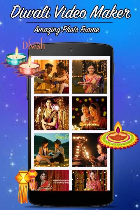 Дивали Video Maker легко использовано и сделать лучший Дивали видео истории мейкер с вашего Дивали отмечают фотографии из галереи или выбрать альбом. Вы должны организовать день рождения фото по вашему Дивали слайдшоу во время выбора и добавить Дивали музыка, связанной с вашим Дивали видео рассказа производителя.