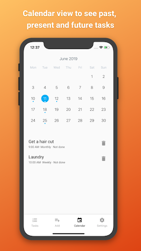 • Вид на календарь, чтобы увидеть прошлое, нынешние и будущие задачи