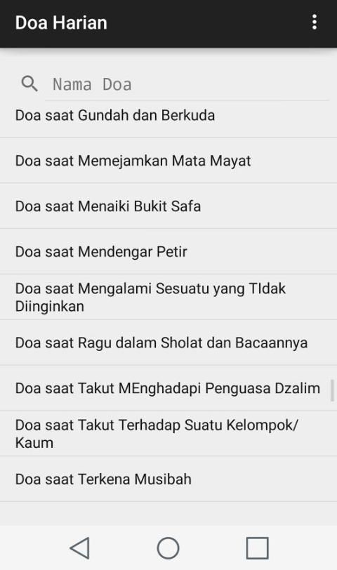 Lebih dari seratus dua puluh doa sehari-hari untuk versi 1.0. Aplikasi ini diharapkan mempermudah mencari doa sehari-hari ditengah kehidupan kita yang semakin mobile tidak terlepas dari handphone terutama android. Sehingga bagi anak-anak pun dapat langsung mencari dengan kata-kata umum seperti "adzan, wudhu, masuk, masjid, sholat, keluar, petir, dan sebagainya". Semoga bermanfaat untuk menghafal atau memberikan Informasi. Dan dimungkinkan ada bagian-bagian yang perlu diperbaiki ke depannya dapat menyampaikan saran atau kritik membangun via email.Terimakasih.