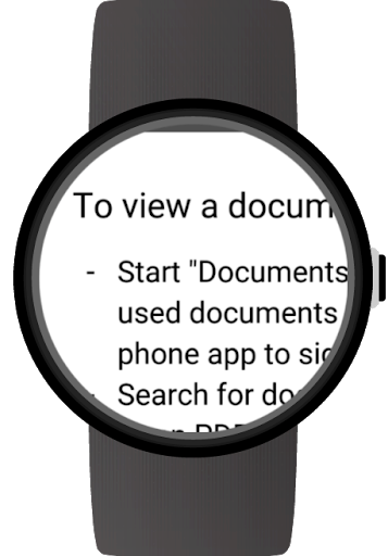 Просмотр PDFS и другие документы из вашего телефона или облачного хранилища на вашей ОС (Android-носите) SmartWatch. Получите повышение производительности носимым доступом к вашим важным документам.