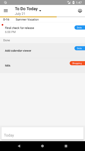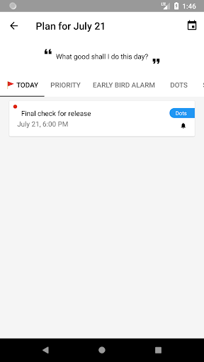 Dots is a to do list service focused on today. Every morning, make a list of things to do for the day. This helps you to accomplish small wins every day and leads to your goal.
