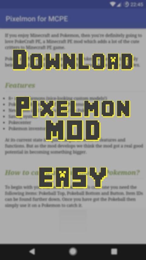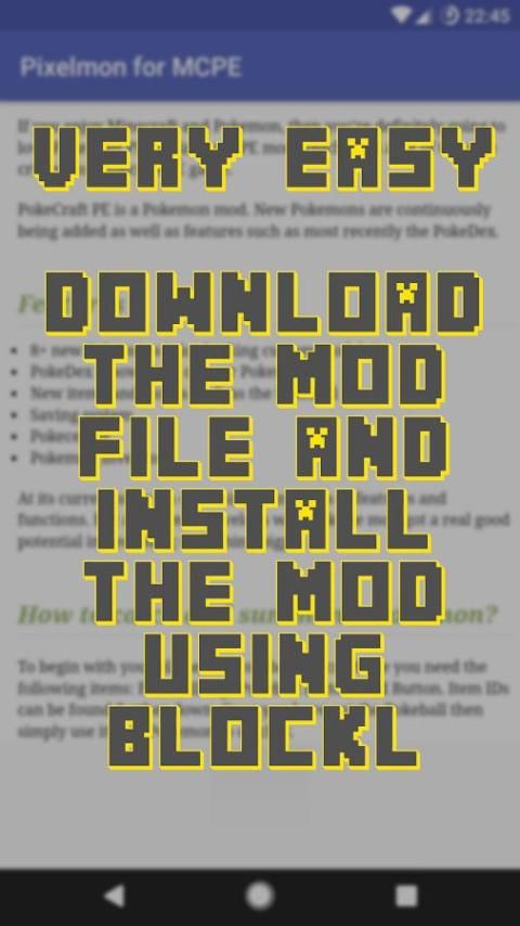 Миллионы бесплатных приложений для андроид представляются в 9apps. 20,000+ пользователи скачали последнюю версию Download Pixelmon MOD for MCPE в 9Apps бесплатно каждую неделю! Это действительно не нужно тратить деньги. Это горячее приложение было выпущено в 2017-03-10. Если вы хотите получить его, просто скачиваете его без сомнения и проводите весёлое время с ним.