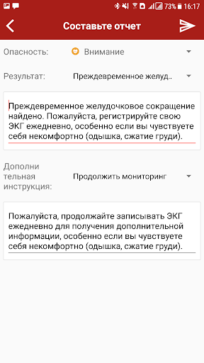 Если вы обнаружили какие-либо не обычные сердечные деятельности, вы можете отправить пациенту отчет о состоянии здоровья, содержащий ваш анализ и/или дальнейшие инструкции.
