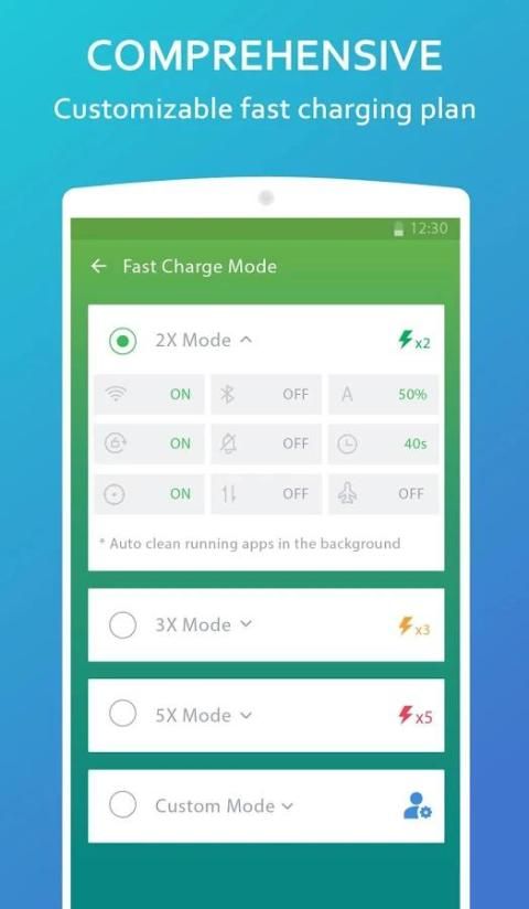 Режим быстрой зарядки Доктор быстрой зарядки позволяет в аккумулятор смарт-устройства заряжена менее чем на 50% времени по сравнению с обычными таймингами заряда.