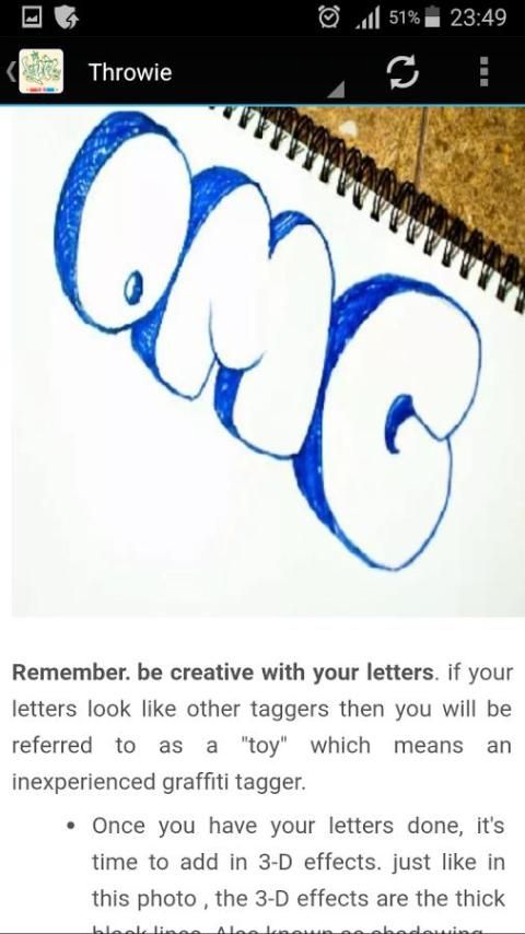 Граффити это способ выразить свои чувства через искусство типографского дизайна. Посмотрите на граффити других художников и работать над улучшением ваших собственных.