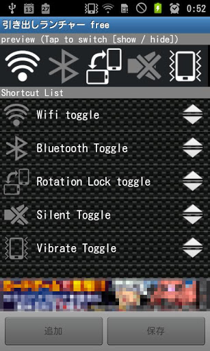 This app is still in beta.put below items to notification areashortcuts for apps Shortcuts Set toggle wifi bluetooth etc.You can that with a Onetap from notification area, start the app, switch the settings Caution There seems to be a device can not install apps from the apk file during the execution of this app.Please stop this app temporarily before installing it from an apk file.search words wifi, wifi, Wireless lan, 3G, Bluetooth, GPS, Manor mode, Vibration mode, Silent mode, Toggle, Rotation, Air plane, AutoSync, Launcher, switch, Drawer Launcher, Notification