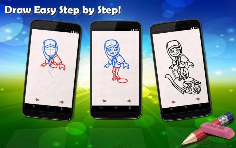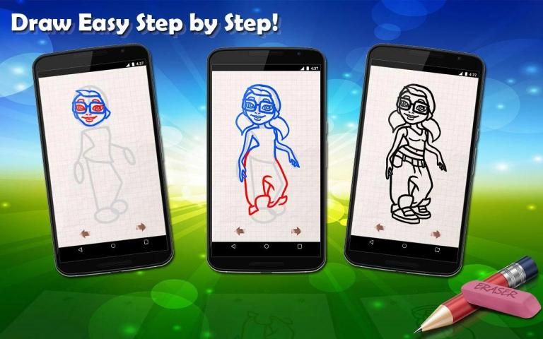 Мы научим вас рисовать героев мультфильмов и игр Сабвей серферс и делать это идеально красиво, стоит вам только установить приложение на свой телефон или планшет. Приложение работает таким образом, что после установки вы получаете доступ к обширному каталогу изображений. Выбирайте того персонажа Тонельные Серферы, который вы хотите нарисовать и преступайте к веселому рисованию прямо здесь и сейчас. Вы можете выбрать, кого вам нарисовать первым, это может быть любой герой мультфильма, наш ваш выбор. Выбрав Subway персонажа вы получаете пошаговый урок по рисованию, это будет Джейк, Трики, Фреш, Тэгбот или кто-то еще, решать только вам! Урок по рисованию содержит около 10 «шагов», повторите каждый из них и вы получите идеальную картинку! Рисуйте красиво с помощью вашего мобильного девайса и приложения для рисования!