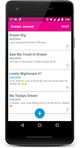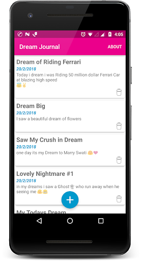 Dream Journal is simple app to maintain a Record Data for your Dreams (& Nightmares). Every morning wake & write your dreams before you forget it.