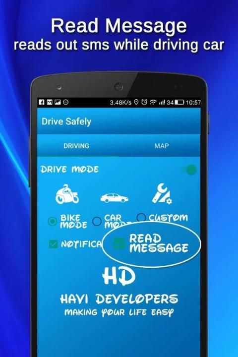 3. Drive Safely автоматически отправить сообщение, которое вы водите. (Автомобиль или велосипед)