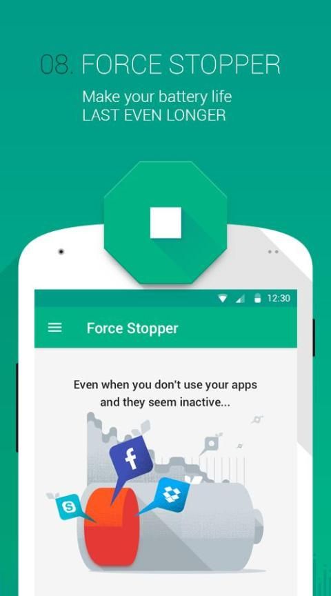 ► FORCE STOPPER : Быстро остановить все приложения, которые работают в фоновом режиме и потребляет батарею вашего телефона.