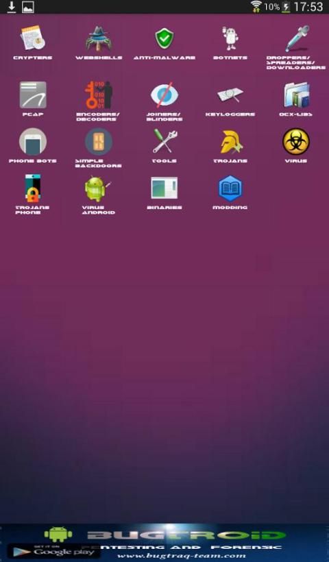 Droidbug Haunter APP только для Android с более чем 500 инструментов для анализа и практики в закрытых помещениях.