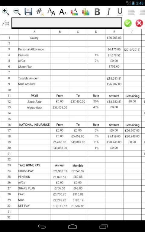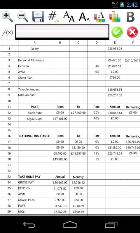 Droidsheet имеет обычные средства для вставки, удаления, копирования и вставки ячеек по отдельности или в блоках. вместе с целым рядом вариантов форматирования. Параметры форматирования позволяют изменять региональные настройки (графство / регион), числовые форматы, шрифт, размер текста, эффекты шрифта, выравнивание текста, цвет текста, цвет фона, высоту строк и ширину столбца.