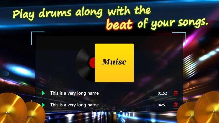 Приложение предназначено для всех: дети, ударников, музыканты, барабанщики, любители, начинающие ... Имитация реального Drum и тарелок на вашем мобильном устройстве или на экране планшета. Это смешно и легко играть, просто барабанить пальцами по подушками барабанов и тарелок, то звук воспроизводится одновременно.
