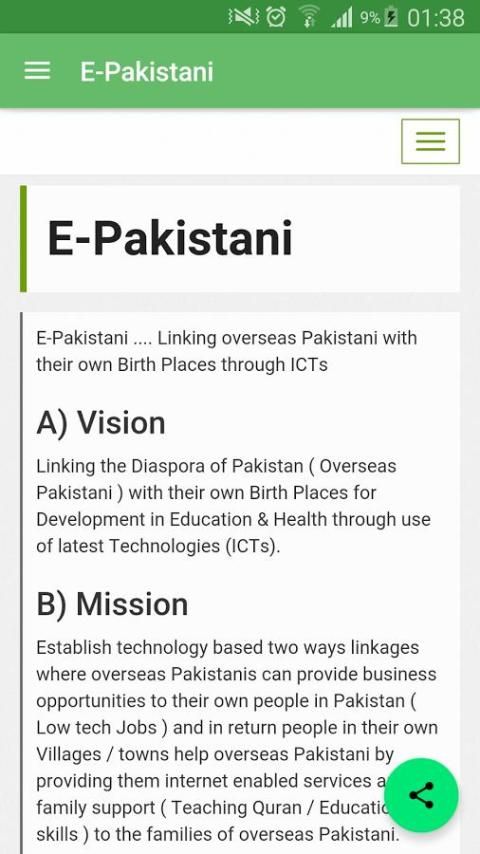 Создание технологии на основе двух способов связи, где зарубежные пакистанцы могут предоставить бизнес-возможности для своих собственных людей в Пакистане (Low Tech Jobs) и в возвращении людей в их собственных деревнях / городах помочь за рубежом пакистанская, предоставляя им интернет включен услуг и поддержки семьи (Обучение Коран / Образование / навыки) семьям за рубежом. пакистанская