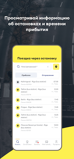Просматривайте информацию об остановках, агентах и времени прибытия.