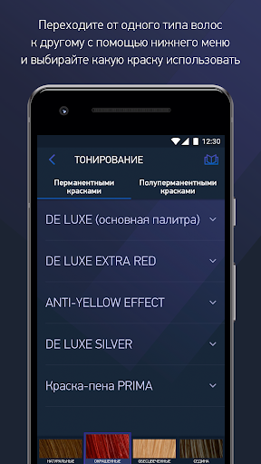* Легко и быстро переходите из одного типа волос в другой с помощью панели внизу экрана.