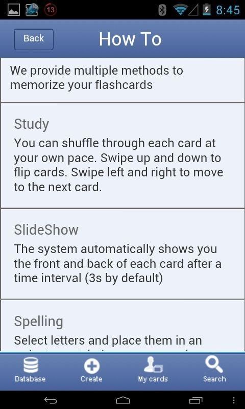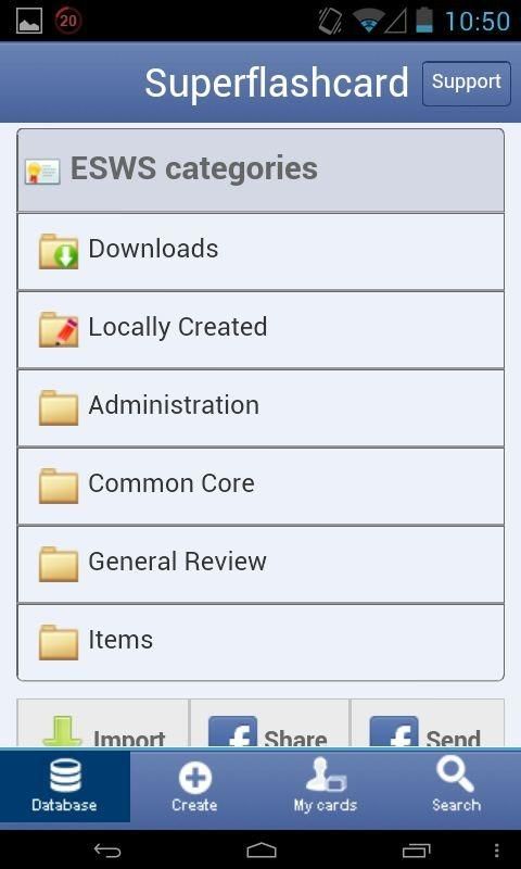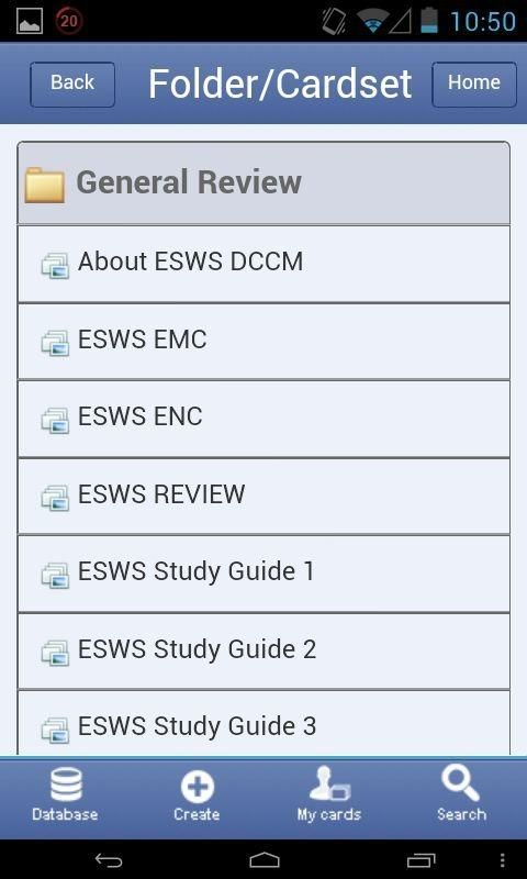 Powered by superflashcard with a built-in spaced repetition scheme, the app will also help you memorize ESWS flashcards more efficiently by showing ESWS flashcards just before you forget. Please visit http://superflashcard.com/tour/ for screenshots, tutorials, and more. ESWS flashcard ESWSabase Study ESWS flashcards with/without slideshow mode Matching ESWS flashcard games Memorize ESWS flashcard games ESWS flashcard quizzes ESWS flashcard progress tracking Access/study to your flashcards on Superflashcard.com Leitner system ESWS Flashcard study for students. Study ESWS flashcards from everywhere. http://www.superflashcard.com support@superflashcard.com