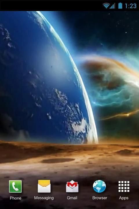 Незабываемый вид планеты Земля с Луны. Земля - третья от Солнца планета Солнечной системы, единственная планета, на которой известно жизнь, дом человечества. Земля относится к планетам земной группы и является крупнейшей из этих планет в Солнечной системе. Землю иногда называют миром, латинским названием Терра или гречески - Гея. Украсьте свой телефон одними из многих живых обоев. Наши замечательные обои в HD качестве ждут Вас. Почувствуйте всю красоту экрана телефона, установив наши бесплатные обои. Живые бесплатные обои для кого угодно и на любой вкус. Загружайте! • Абсолютно бесплатное приложение. • HD графика и Open GL. • Совместимость с 99% мобильных телефонов устройств. • Когда вы не используете свой телефон, живые обои не разряжают батарею.