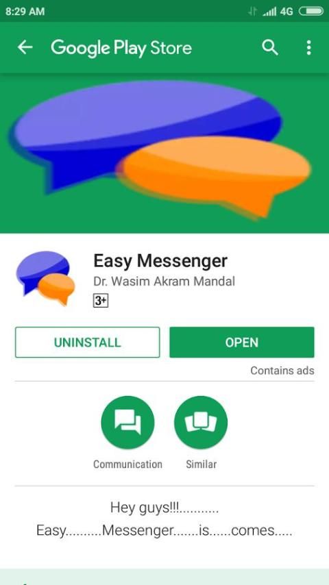 Ожидание наконец закончились .. Easy Посланника является самой простой и наиболее простой формой общения теперь в вашем fingertips..it этим приложения для подключения, обмена и шептать или кричать из loud..with вашей семьи и друзей. Есть много других приложений обмена сообщениями, которые мы любим и использовать на регулярной основе. Но это всегда кажется, что мы все еще не хватает вид взаимодействия, которую мы любим, когда мы общаться лицом к лицу. Easy Коммуникатор пытается довести эти чувства и эмоции снова.