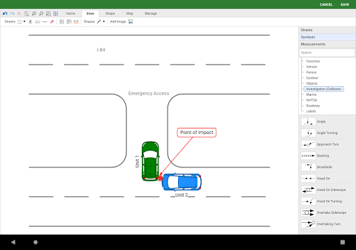 Easy Street Draw Mobile предназначен для того, чтобы помочь в расследовании и документировании дорожных аварий.Он предоставляет простую электронную форму для записи деталей инцидента, инструменты для рисования диаграмм инцидента и возможность снимать соответствующие фотографии.Все это сохраняется в файле Casebook, который может быть импортирован в Easy Street Draw для Windows для дополнительной уточнения, генерации отчетов и т. Д.