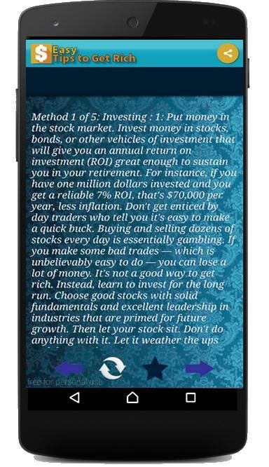 Применение '' Easy Советы Разбогатеть '' дает вам информацию и советы и способы, чтобы получить богатый