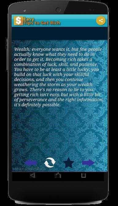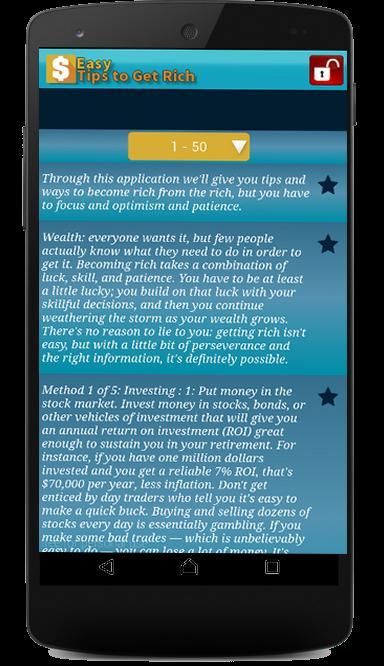 Application ''Easy Tips to Get Rich'' gives you information and tips and ways to get rich